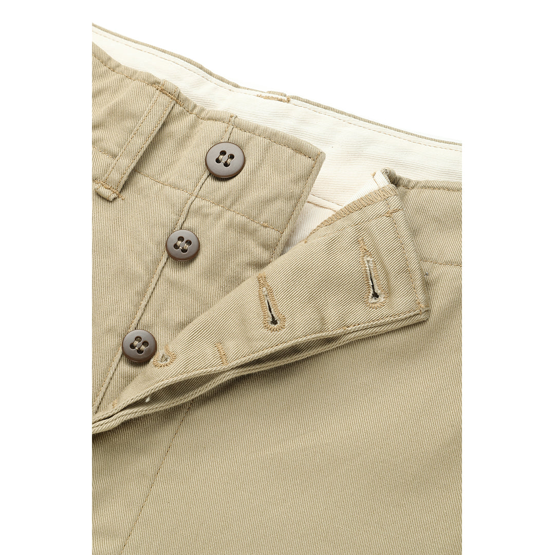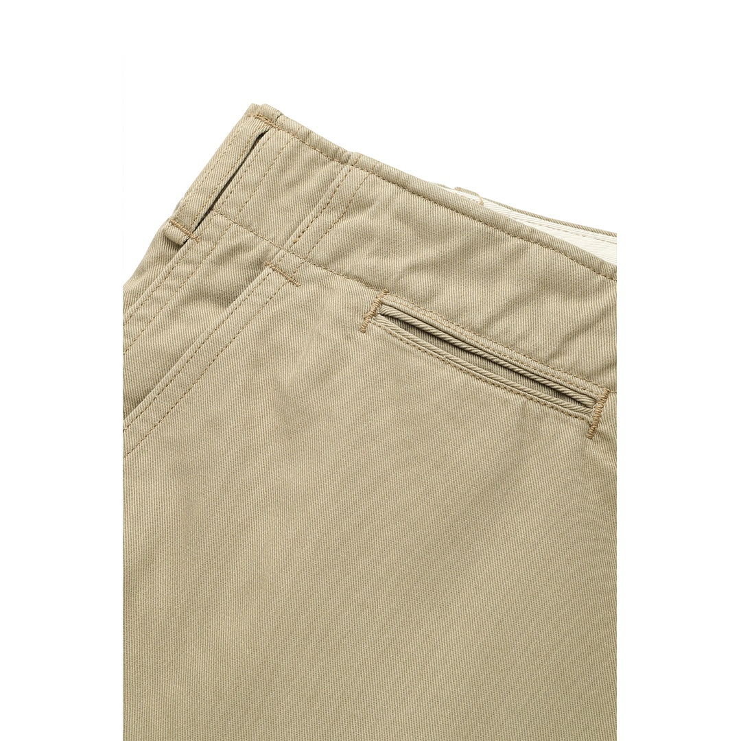 Following this background, these khaki chino trousers were created based on the concept of factory clothing that was made with the utmost care at the time.